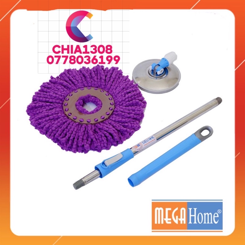 CÂY LAU NHÀ 360 ĐỘ SIÊU NHẸ SIÊU BỀN CỦA MEGAHOME ( MÂM INOX) ( sỉ ib)