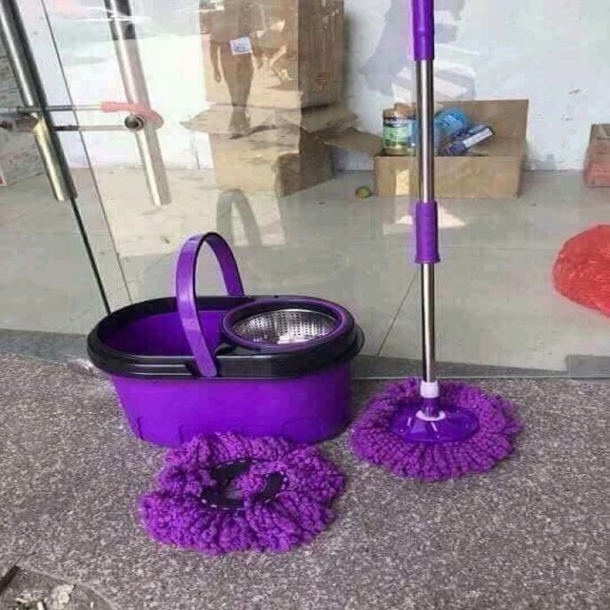 - Bộ lau nhà gồm: 1 thùng vắt, 1 bàn xoay 360 độ, bộ cán lau, 2 đầu bông lau.