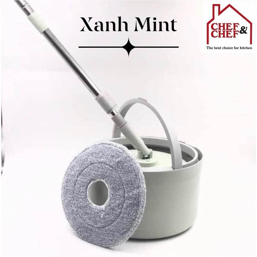 Bộ cây lau nhà Chef & Chef chính hãng xoay 360 độ kèm cây chổi và 1 bông lau, thùng✪ SHOP XIN CAM KẾT ✪