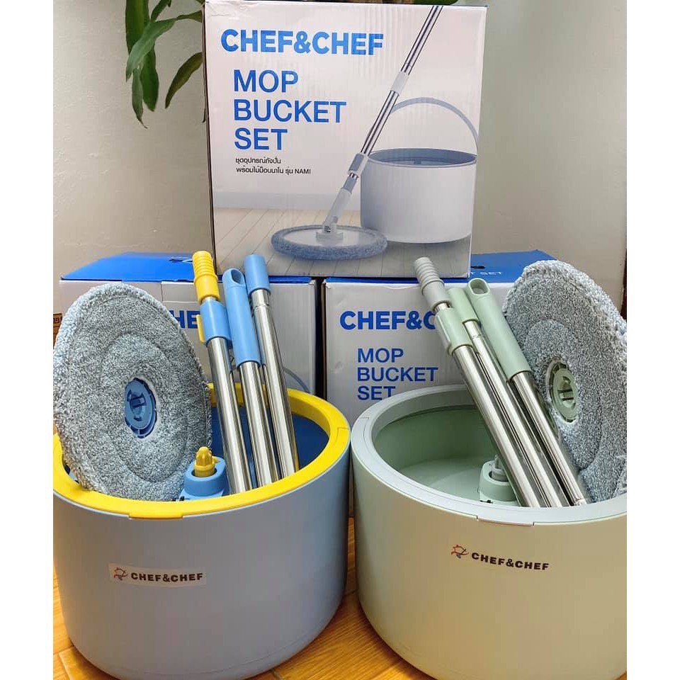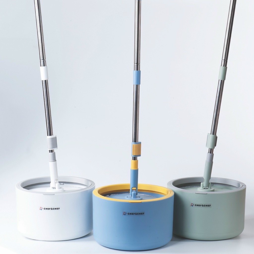 Nhà cửa & Đời sống > Dụng cụ chăm sóc nhà cửa > Cây lau nhà || Bộ cây lau nhà Chef & Chef chính hãng xoay 360 độ kèm cây chổi và 1 bông lau, thùngCòn hàng