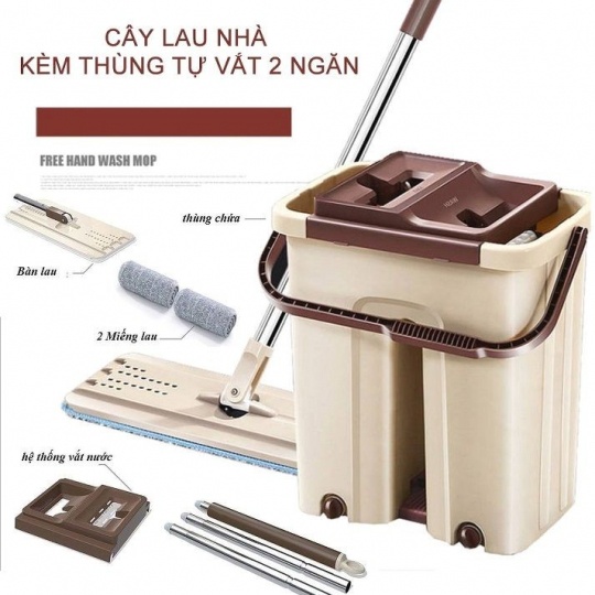 - Thùng 2 ngăn : 1 ngăn vắt khô tự động - 1 ngăn chứa nước để giặt cây lau