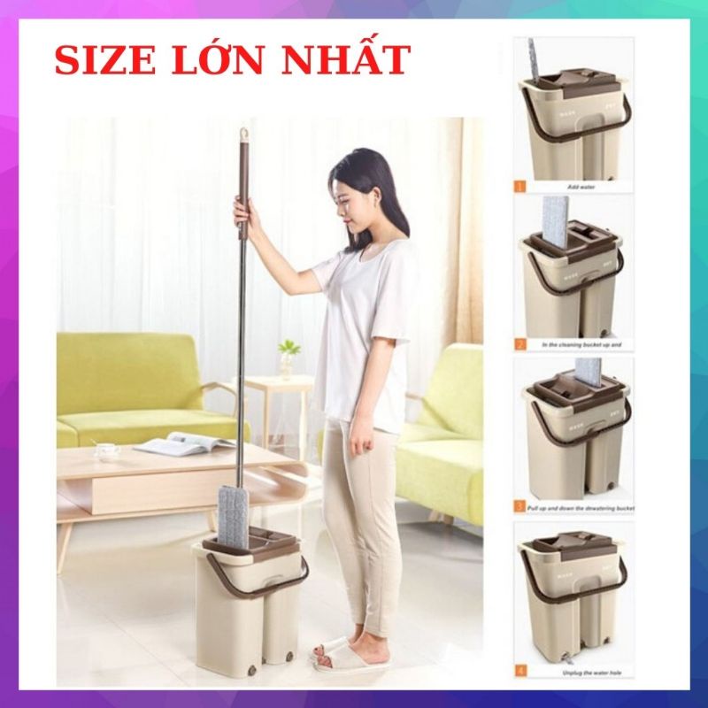 - Thùng 2 ngăn : 1 ngăn vắt khô tự động - 1 ngăn chứa nước để giặt cây lau