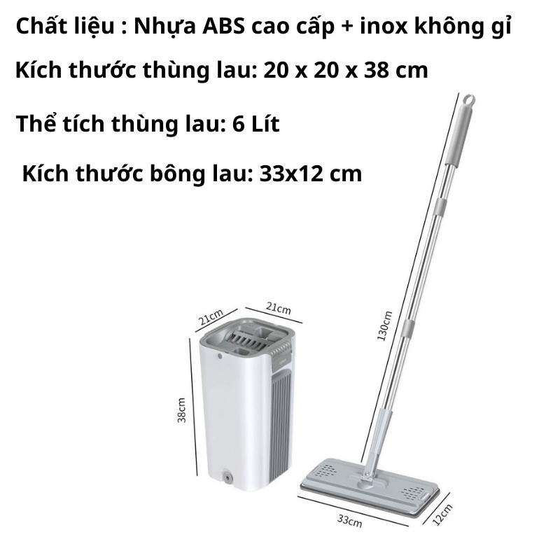 - Thùng 2 ngăn : 1 ngăn vắt khô tự động - 1 ngăn chứa nước để giặt cây lau