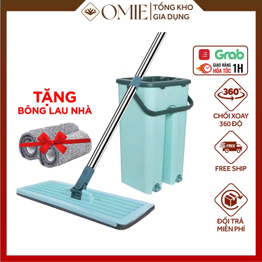[SIZE TO] Bộ cây lau nhà chổi lau nhà tự vắt 360 độ cao cấp OMIE tặng kèm thùng , 2 bông lau