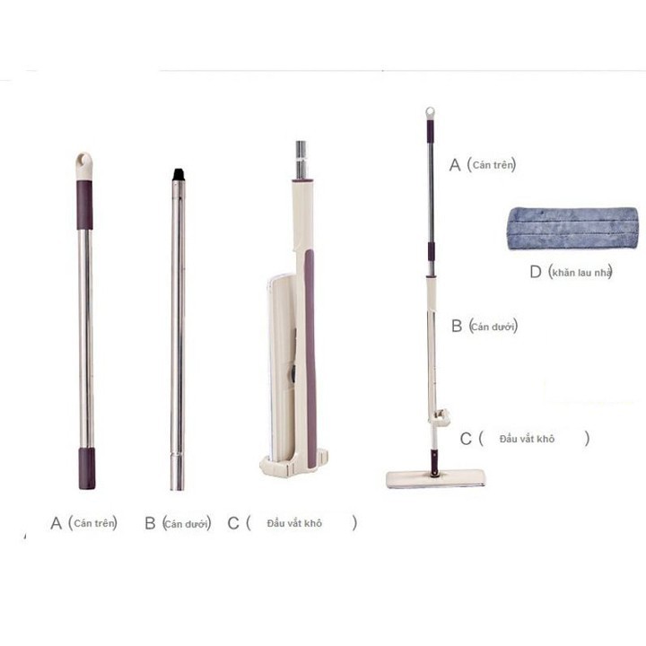 - Bộ sản phẩm bao gồm: dụng cụ vắt, 2 miếng lau và thân cây.