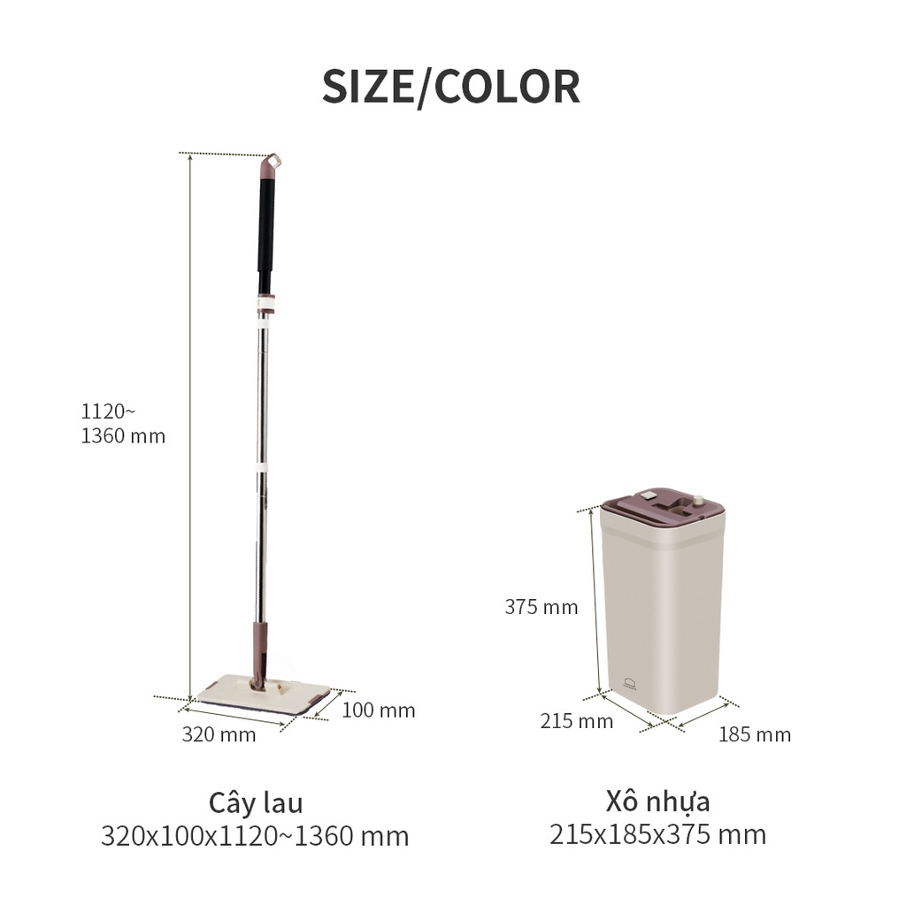 Bộ cây lau nhà gồm xô nhựa, cây lau và 2 bông lau