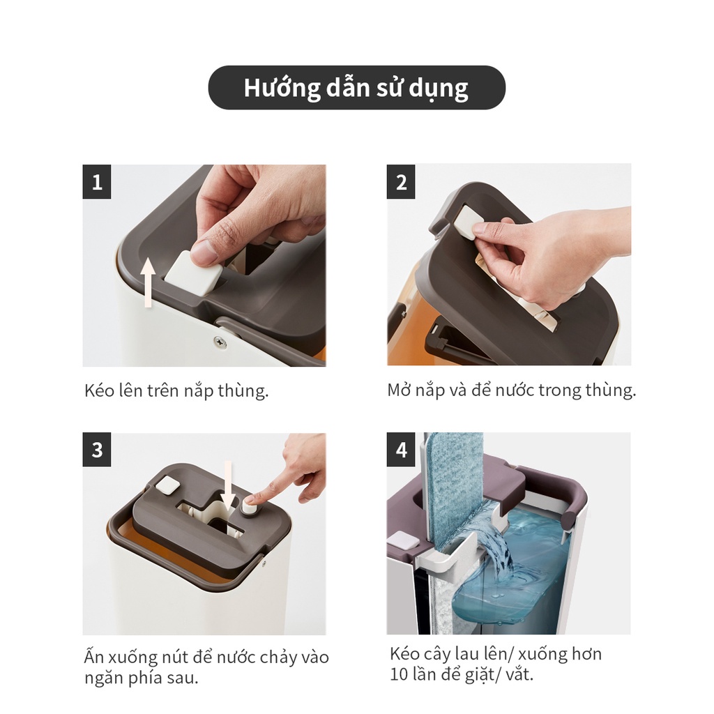 Giặt và vắt nước dễ dàng chỉ với việc kéo cây lau lên/ xuống nhiều lần.
