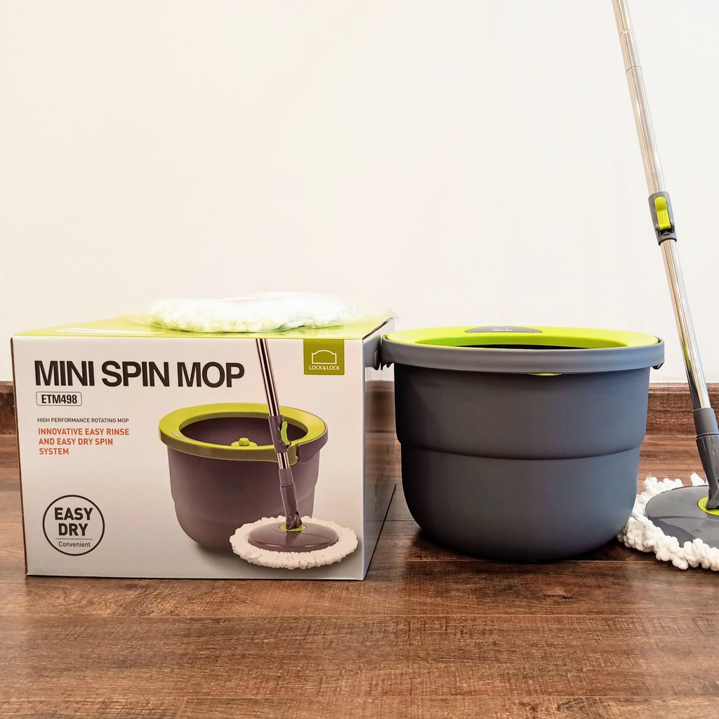 Bộ cây lau nhà Inox xoay tay mini Ettom Lock&Lock ETM498 - 2 Bông Lau- Bộ sản phẩm gồm 1 thùng chứa nước, 2 bông lau cùng 1 cây lau