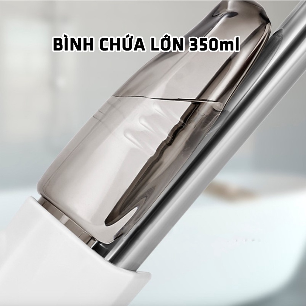 ĐẶC BIỆT: Có thể sử dụng tích hợp nước lau sàn thơm, hoá chất tẩy rửa hoặc xà phòng pha với nước để sử dụng. Bình Chứa Dung Dịch lên tới 350ml sử dụng cho mặt sàn 100m2.
