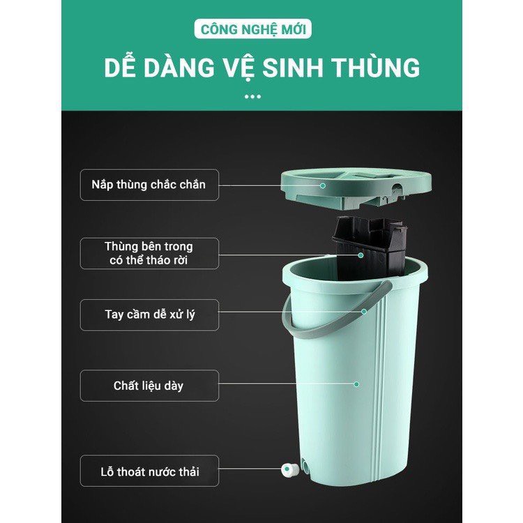 - Thùng 2 ngăn : 1 ngăn vắt khô tự động - 1 ngăn chứa nước để giặt cây lau