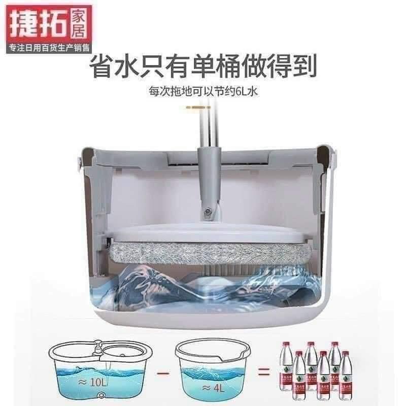 - Chổi được thiết kế Bơm nước độc đáo khi xoay(khi xoay bơm nước hoạt động và bơm lượng nước vừa đủ để giặt bông lau,và tự động vắt khô)