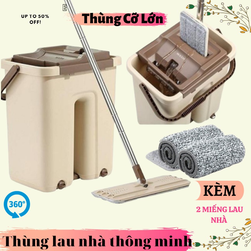 Bộ cây lau nha thông minh - COMBO lau nhà tự vắt thông minh - Bộ lau nhà 360 độ - 2 ngăn tự vắt tiện dụng lau sạch