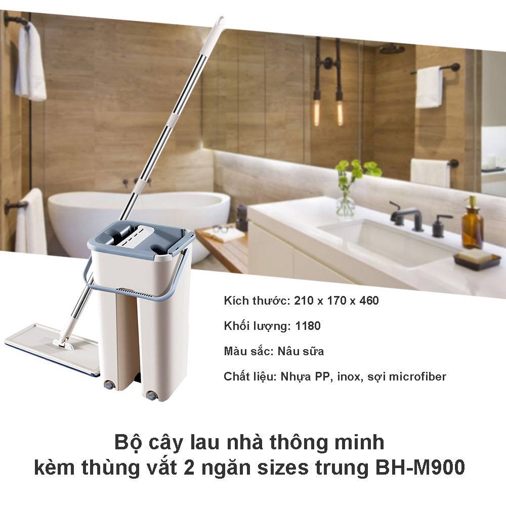 Giới thiệu Bộ cây lau nhà thông minh inochi kèm thùng vắt 2 ngăn sizes trung BH-M900 gồm 1 chổi lau nhà và một thùng giặt