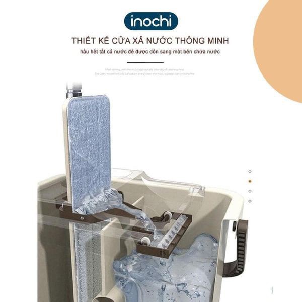 Bộ cây lau nhà thông minh inochi kèm thùng vắt 2 ngăn sizes trung BH-M900 gồm 1 chổi lau nhà và một thùng giặt