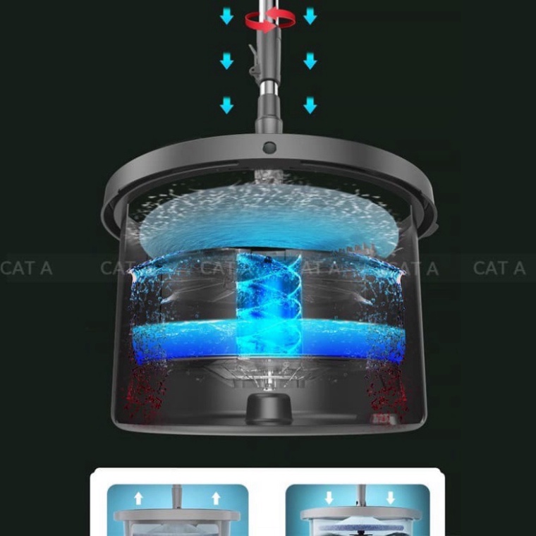 - Chổi được thiết kế Bơm nước độc đáo khi xoay(khi xoay bơm nước hoạt động và bơm lượng nước vừa đủ để giặt bông lau,và tự động vắt khô)