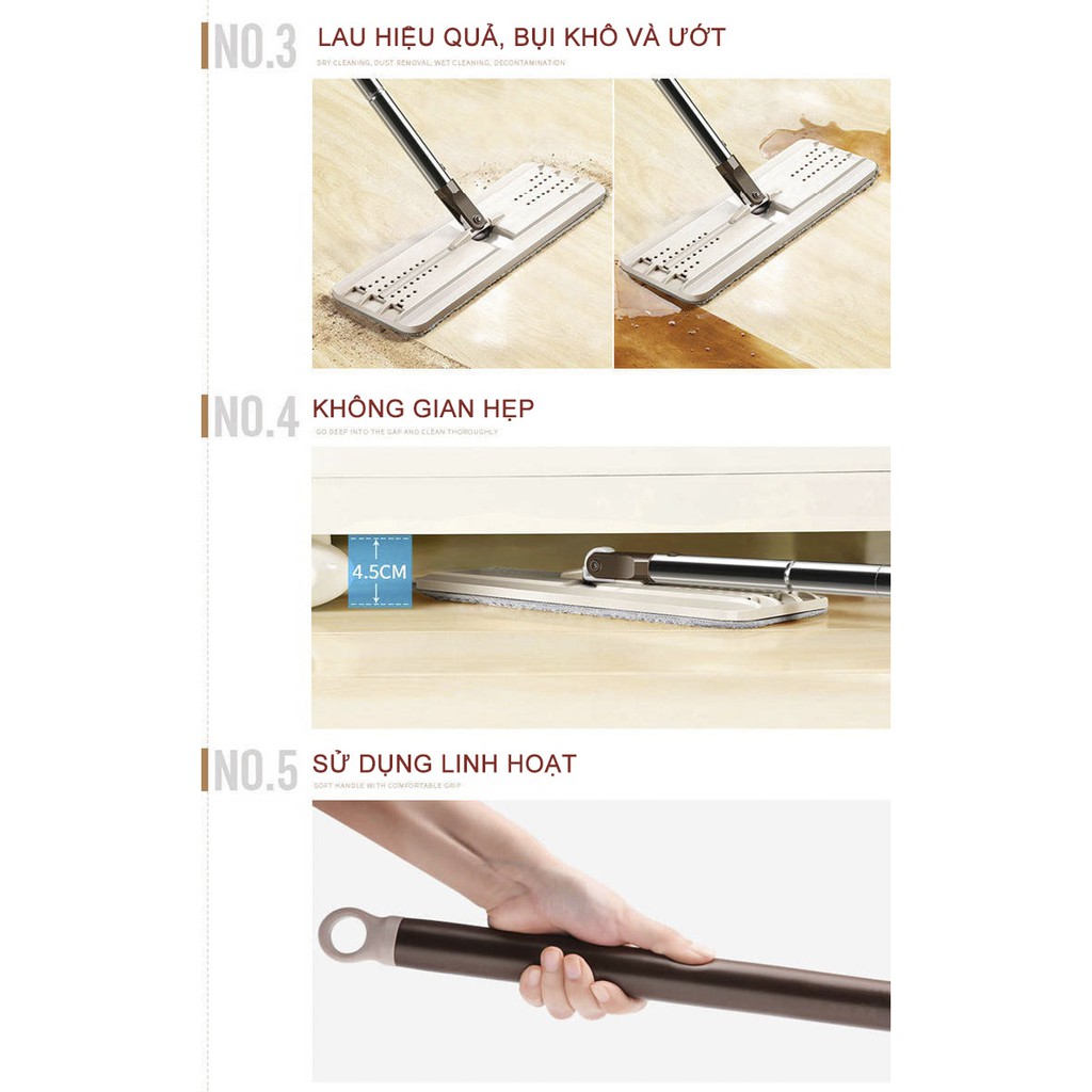 - Bàn lau hình chữ nhật của cây lau nhà thông minh này tăng diện tích lau lớn hơn gấp 3 lần so với loại thường.