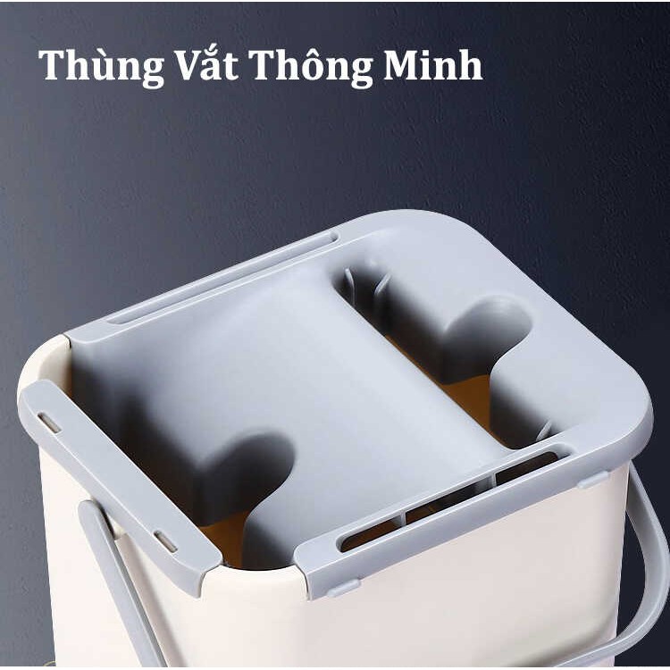 Tên sản phẩm: Bộ cây lau nhà thông minh kèm thùng vắt 2 ngănChất liệu thùng: Nhựa PP cao cấp