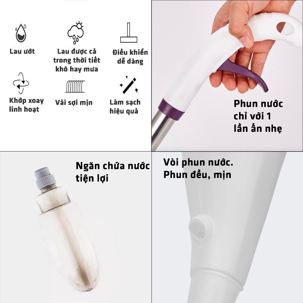 ƯU ĐIỂM SẢN PHẨM: Cây lau nhà phun sương xoay 360 độ