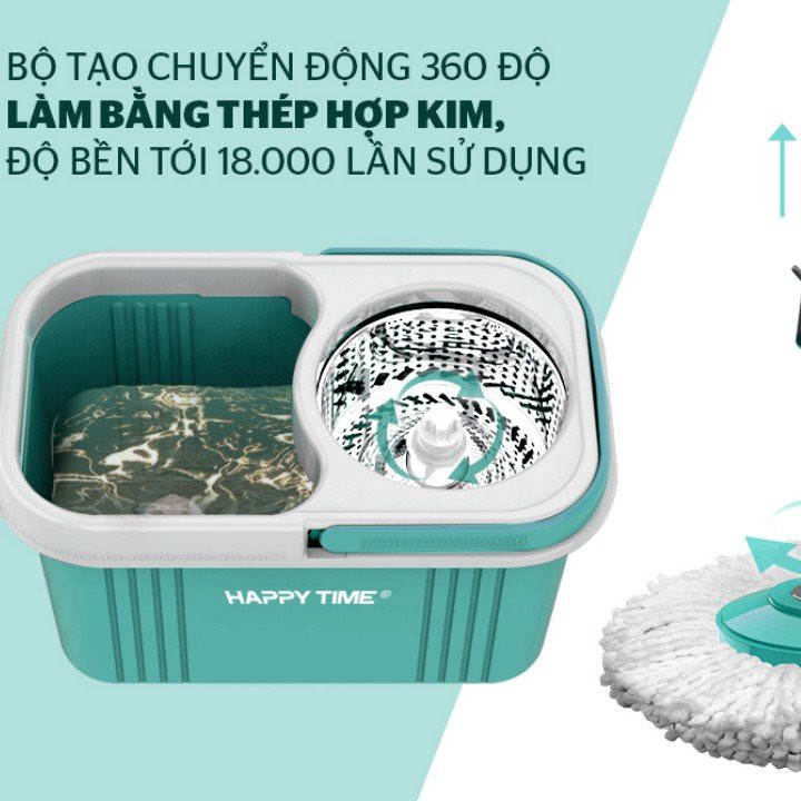 ✅ Bộ lau nhà là vật dụng cần thiết cho mỗi gia đình. Sản phẩm Bộ lau nhà xoay 360 độ HAPPY TIME KH-CL330S bao gồm một thùng giặt có chứa lồng vắt và 1 cây lau. Với điểm nhấn là bộ tạo chuyển động 360 độ siêu bền, bộ lau nhà HAPPY TIME bạn sẽ dễ dàng lau sạch bụi bẩn trong mọi ngóc ngách và cả những nơi khó lau dọn như gầm giường, gầm bàn, tủ, ghế… giữ cho ngôi nhà của bạn luôn sạch sẽ và thoáng mát.
