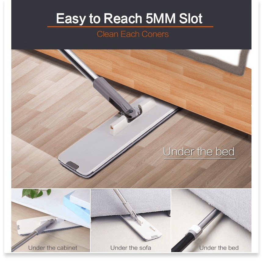 + Tiếp xúc với cán và bàn lau có khớp nối có thể gập lại 180 độ, bạn dễ dàng lau dưới gầm tủ, gầm giường, gầm bàn cũng sẽ sạch bóng.