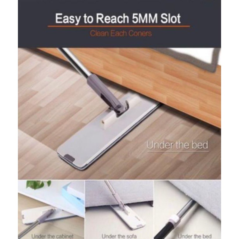 + Tiếp xúc với cán và bàn lau có khớp nối có thể gập lại 180 độ, bạn dễ dàng lau dưới gầm tủ, gầm giường, gầm bàn cũng sẽ sạch bóng.