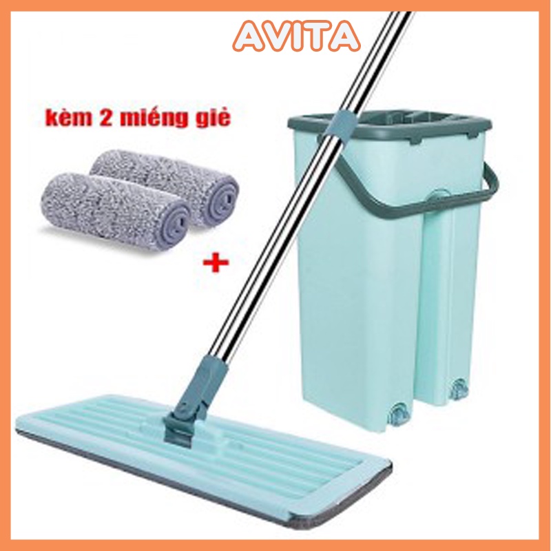 Bộ Cây Lau Nhà Tự Vắt - Chổi Lau Nhà Tự Vắt 360 Độ -Tặng Kèm 2 Bông Lau - Avita