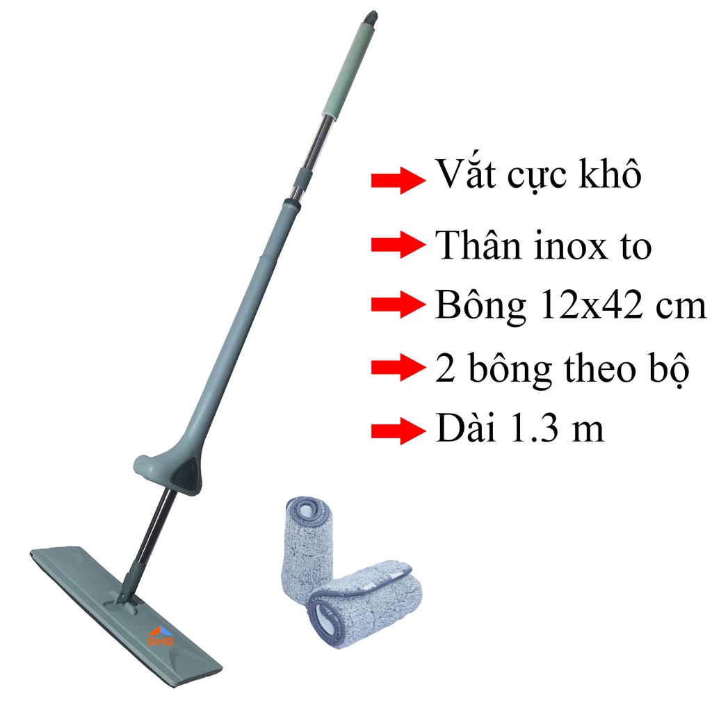 ❆ CÂY LAU NHÀ TỰ VẮT CAO CẤP, HAI BÔNG LAU, MĂM LAU CHỮ NHẬT (DÙNG BÔNG 12X42 CM), LAU CỰC SẠCH, 2 BÔNG LAU