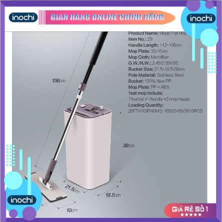 Bộ cây lau nhà thông minh tự vắt Inochi MOP-Z9Kích thước: 21 x 18 x 38 cm