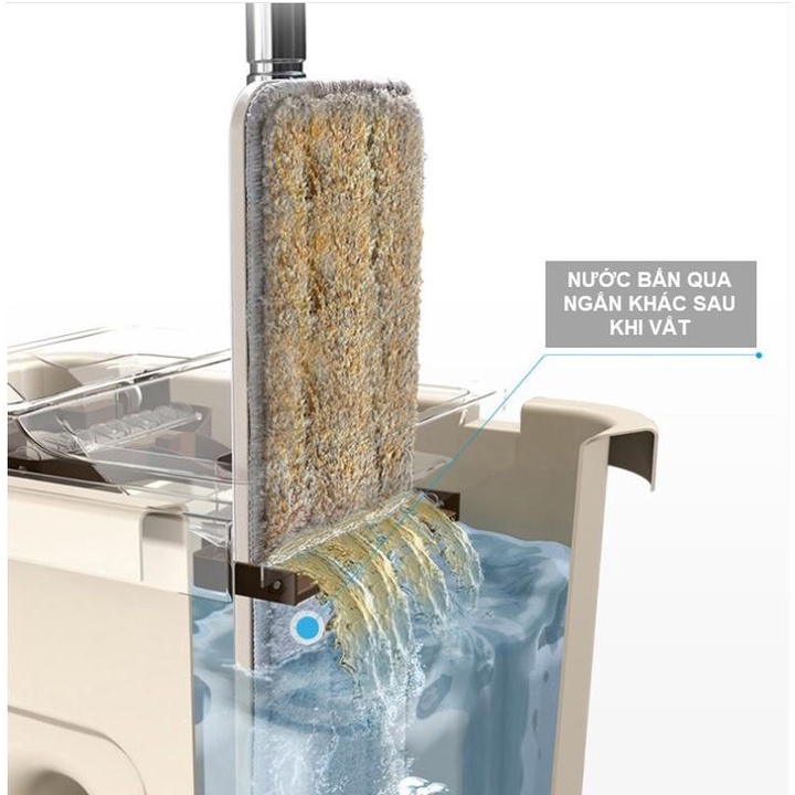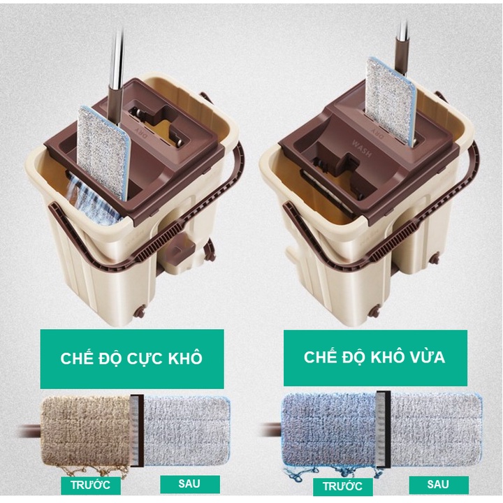 Bộ cây lau nhà tự vắt thông minh cao cấp 360 độ - Bộ cây chổi lau nhà kèm thùng tự gạt nước thông minh 2 ngăn cao cấp