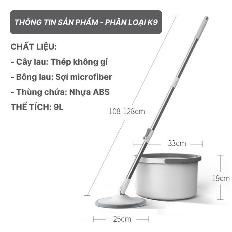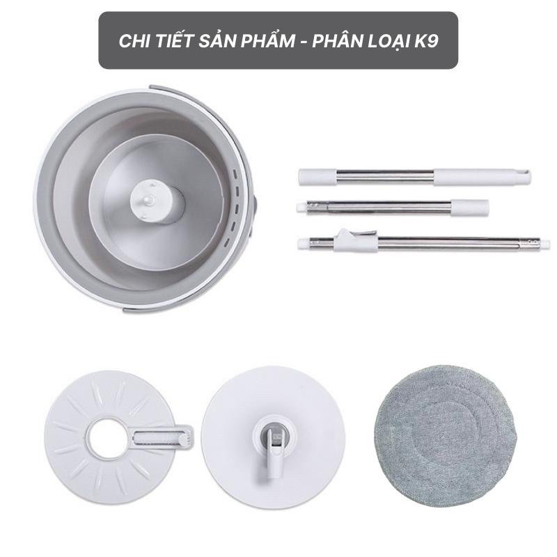 Bộ cây lau nhà tự vắt thông minh K9 chổi lau nhà tách nước bẩn 360 độ siêu sạch - Cây chổi lau nhà xoay 360 kèm thùng