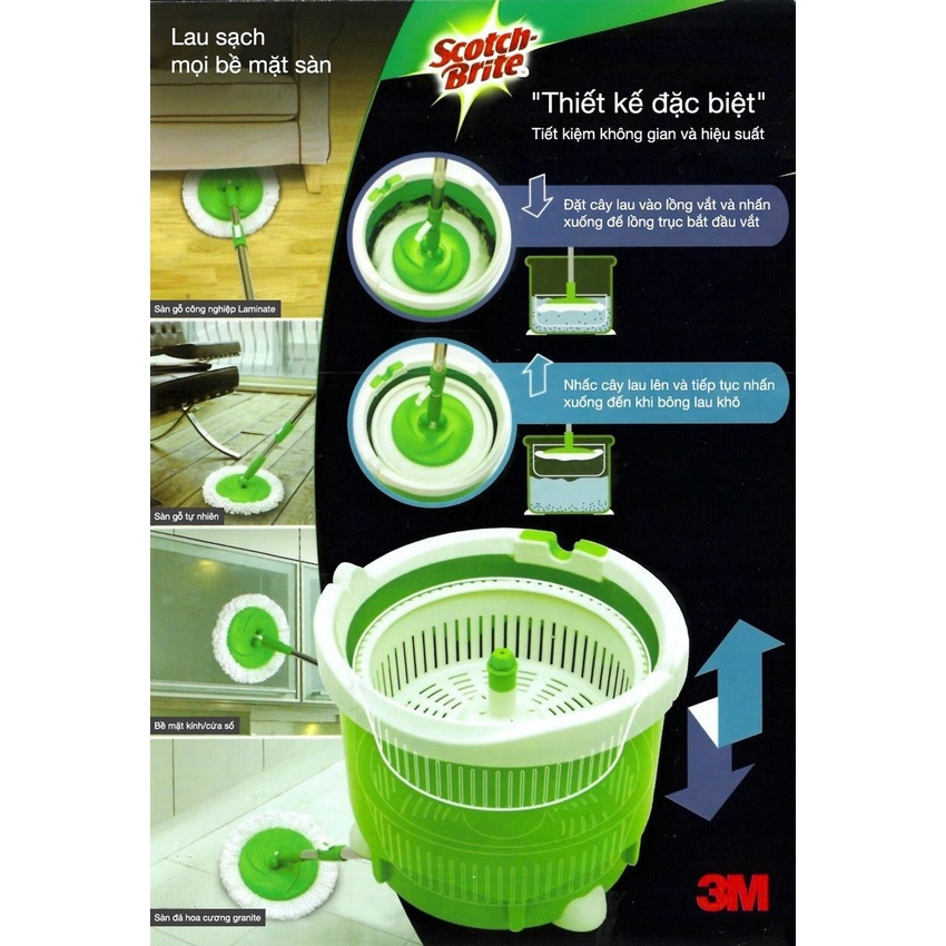 Giới thiệu Bộ Cây Lau Nhà Tự Vắt Thông Minh 360 Độ Scotch Brite Chính hãng 3M - Bảo Hành 6 tháng,Lồng Giặt Và Vắt Tích Hợp