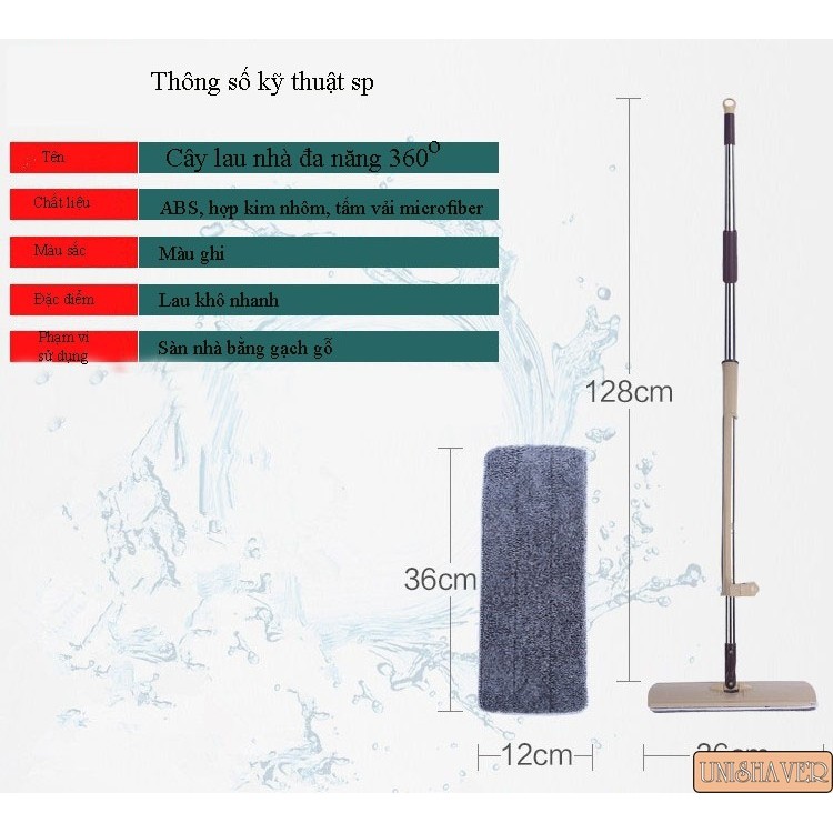 - Cây lau nhà vắt phẳng thông minh xoay 360 độ thiết kế thông minh với đầu lau sàn hình chữ nhật tạo nên lực ly tâm lớn, giúp nhẹ nhàng lau sạch mọi bụi bẩn trên sàn nhà hay mọi ngõ ngách, góc hẹp trong ngôi nhà bạn một cách nhanh chóng và sạch sẽ.THÔNG TIN SẢN PHẨM :
