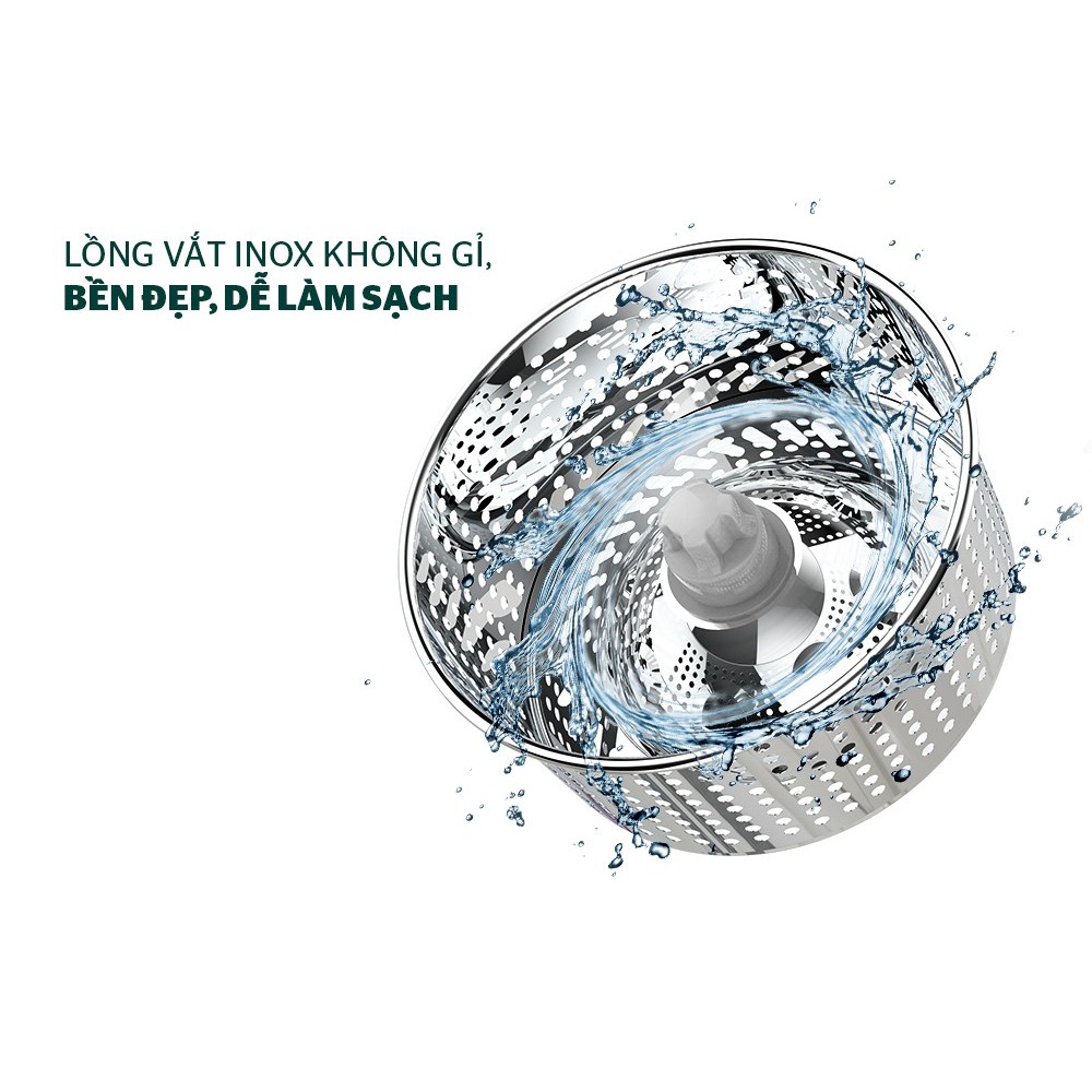Bên trong thùng giặt có 1 lồng vắt bằng inox chống han gỉ và giúp dễ dàng vắt khô nước của bông lau nhờ cơ chế vắt ly tâm và thiết kế lỗ thoát tiện dụng.