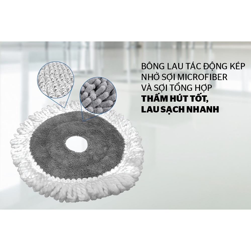 Bông lau tác động kép nhờ sợi microfiber và sợi tổng hợp thấm hút tốt, lau sạch nhanh