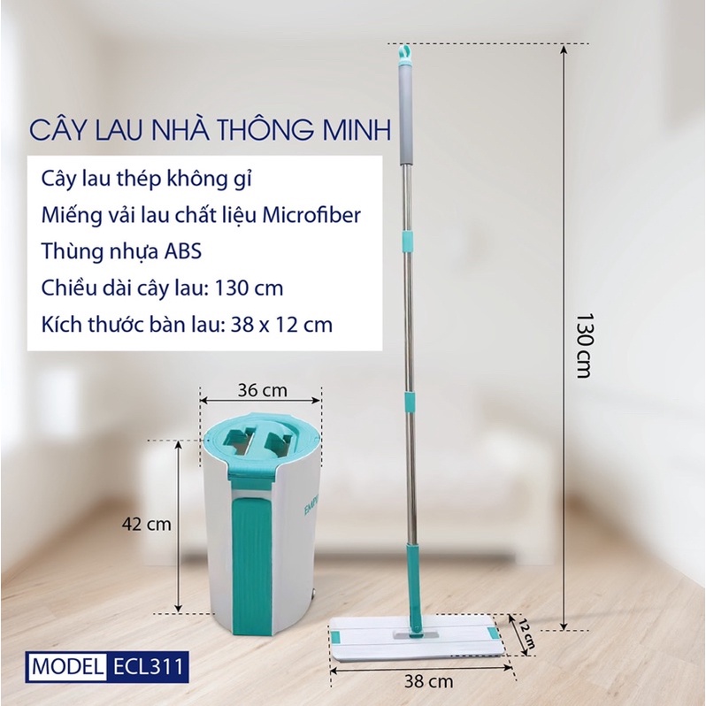 Cây Lau Nhà Empire ECL311 Bộ Lau Nhà Tự Vắt Thông Minh với khả năng lau sạch sàn nhà một cách nhanh chóng và nhẹ nhàng, phù hợp với mọi loại bề mặt sàn như sàn gạch, sàn gỗ, sàn đá, tường ốp gạch và mặt kính, phù hợp với mọi không gian và diện tích nhà ở.1. ƯU ĐIỂM SẢN PHẨM Cây Lau Nhà Empire ECL311: