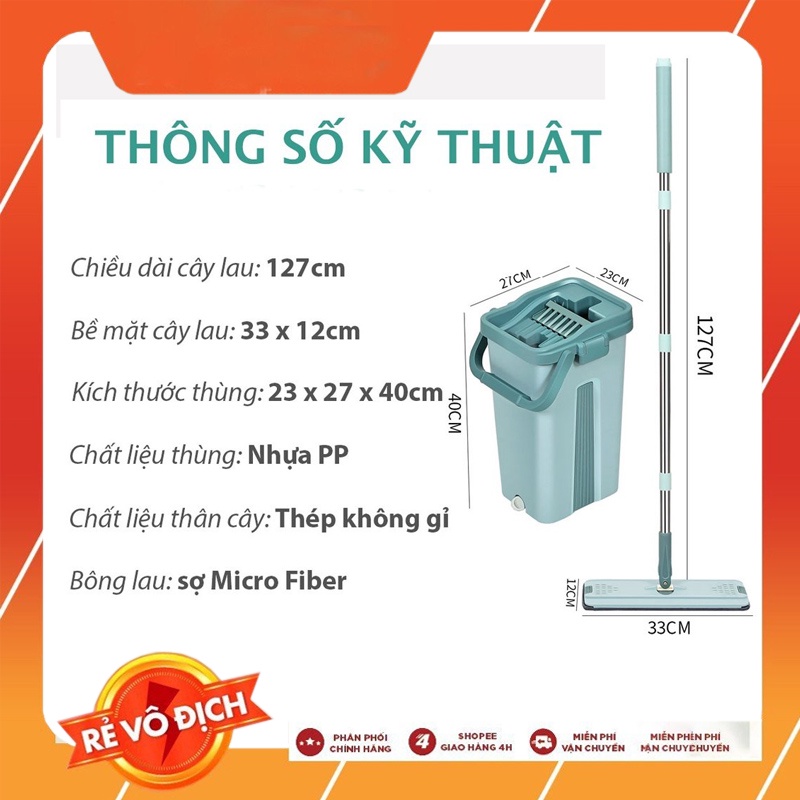 ✅ THÔNG TIN SẢN PHẨM BỘ LAU NHÀ THÔNG MINH 360 ĐỘ:-Kích thước sản phẩm: + THÙNG VẮT (DxRxC): 27X23X40 cm