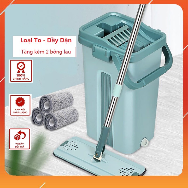 Nhà cửa & Đời sống > Dụng cụ chăm sóc nhà cửa > Cây lau nhà || Bộ cây lau nhà xoay 360 độ tự vắt thông minh 2 vách ngăn cao cấp loại to, dầy dặn (Tặng kèm thùng, 2 miếng lau)Còn hàng
