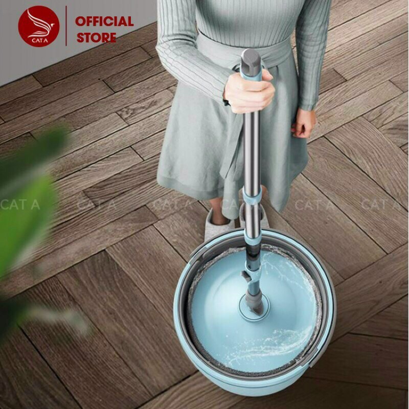 Bộ Cây Lau Nhà Xoay tay FLAT MOP [Chính hãng]Thùng chứa gọn nhẹ, nhựa PP chất lượng