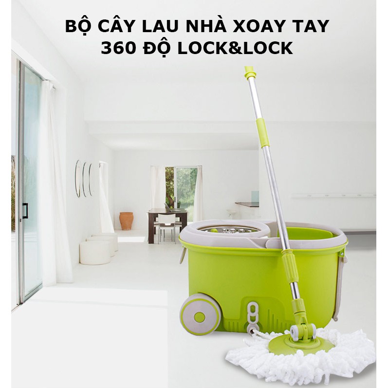 Bộ cây lau nhà xoay tay 360 độ Lock&Lock MOP-L003 (Xanh lá cây) gồm 1 thùng chứa nước, 2 bông lau cùng 1 cây lau, sẽ góp phần giúp bạn giữ cho nhà cửa luôn được sạch sẽ và khô thoáng.