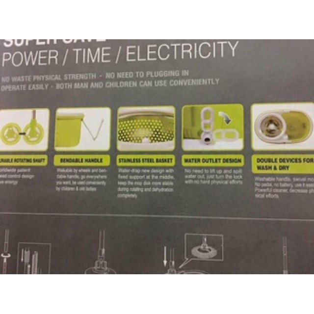 -Van xả nước bên hông thùng tiện cho việc xả nước bẩn, không cần nghiêng thùng như các cây lau nhà truyền thống.
