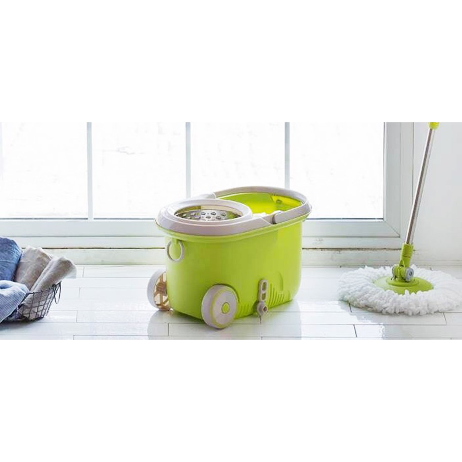 Bộ cây lau nhà xoay tay 360 độ Lock&Lock MOP-L003 (Xanh lá cây) gồm 1 thùng chứa nước, 2 bông lau cùng 1 cây lau, sẽ góp phần giúp bạn giữ cho nhà cửa luôn được sạch sẽ và khô thoáng.
