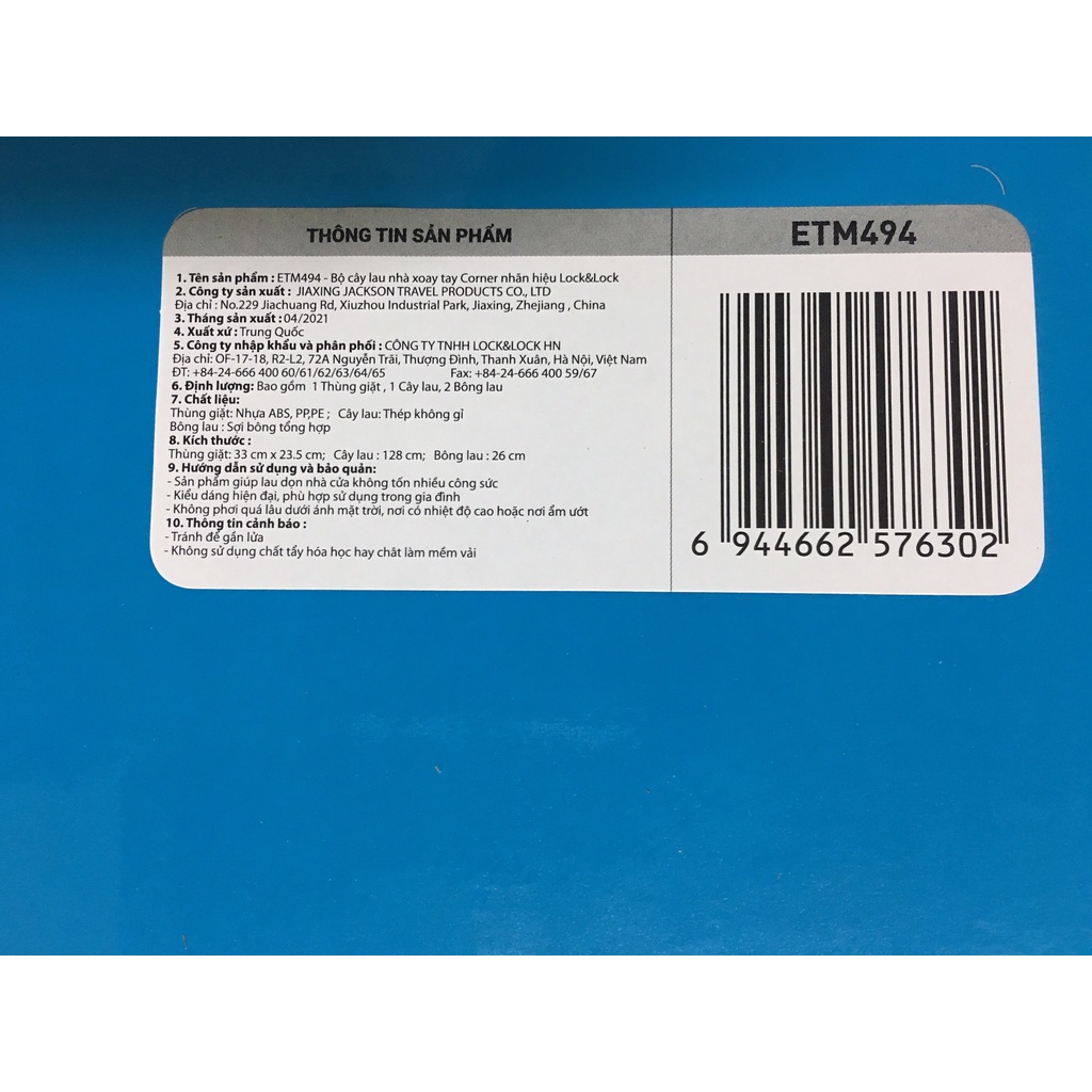 Nhà cửa & Đời sống > Dụng cụ chăm sóc nhà cửa > Cây lau nhà || Bộ cây lau nhà xoay tay Lock&Lock ETM494 Corner 2 bông lau - Màu xanh biểnCòn hàng