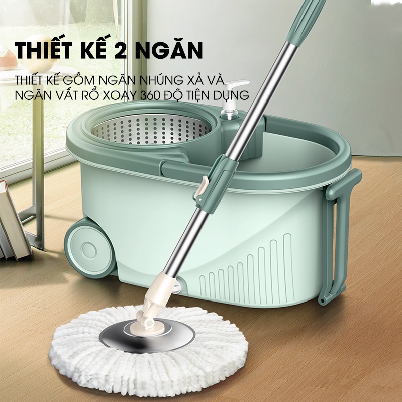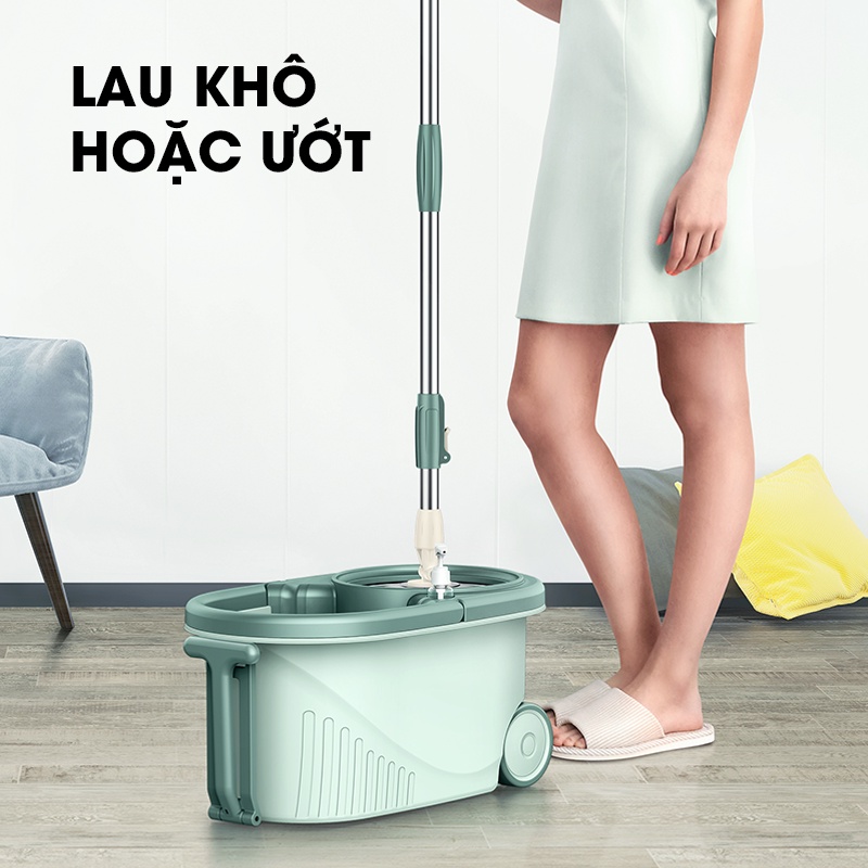 Bộ cây lau nhà cao cấp xoay 360 độ SAMONO SCM003 lau sạch mọi ngóc ngách sàn nhà 2 ngăn chứa lau khô lau ướt thông minh