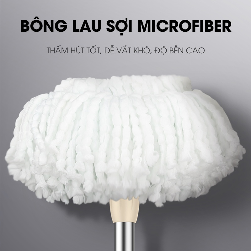 + Bông lau sợi microfiber thấm hút tốt, dễ vắt khô, độ bền cao.