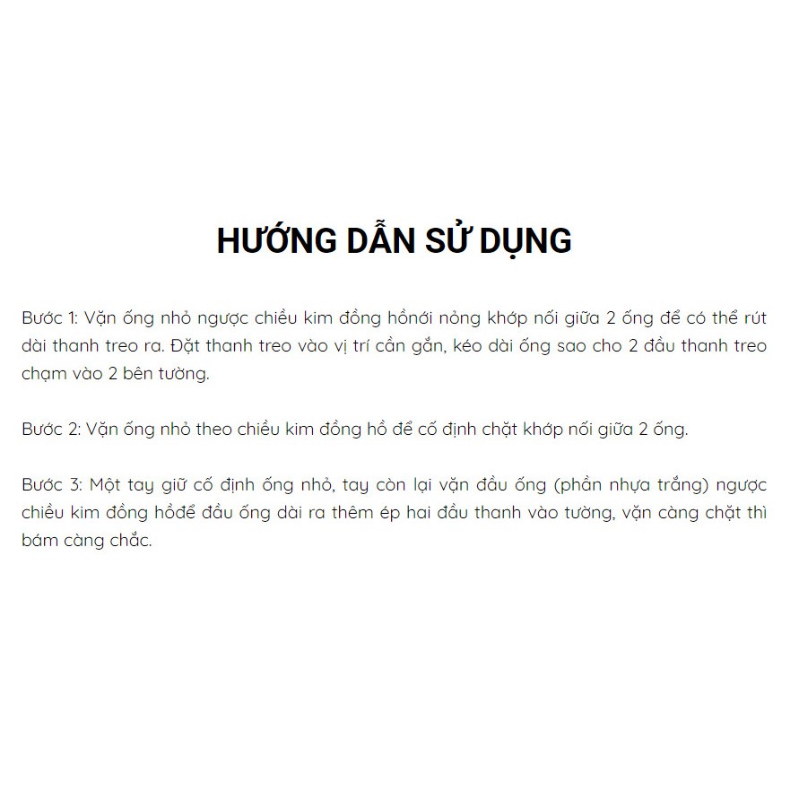 ✔ ĐA NĂNG : Bạn có thể dùng để treo quần áo, các vật dụng trong nhà cũng như làm giá đỡ gác đồ vật. Đặc biệt thanh treo này rất tiện lợi cho việc treo màn cửa sổ, cửa phòng nhà bạn hay bất kì khoảng không gian nào bạn muốn che chắn..