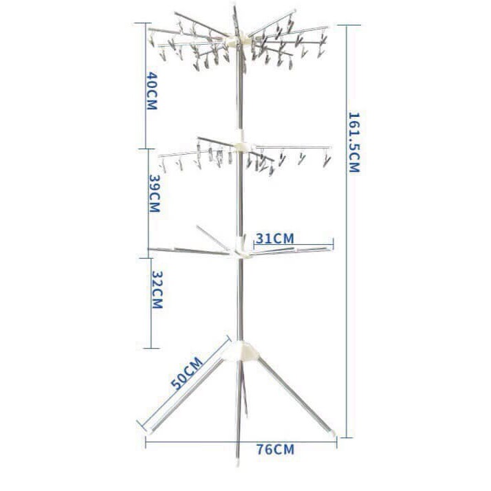 Cây phơi inox gấp gọn loại 56 kẹpCây làm từ inox cao cấp chống gỉ set và có thể gấp gọn khi không sử dụng 1 cách tiện lợi