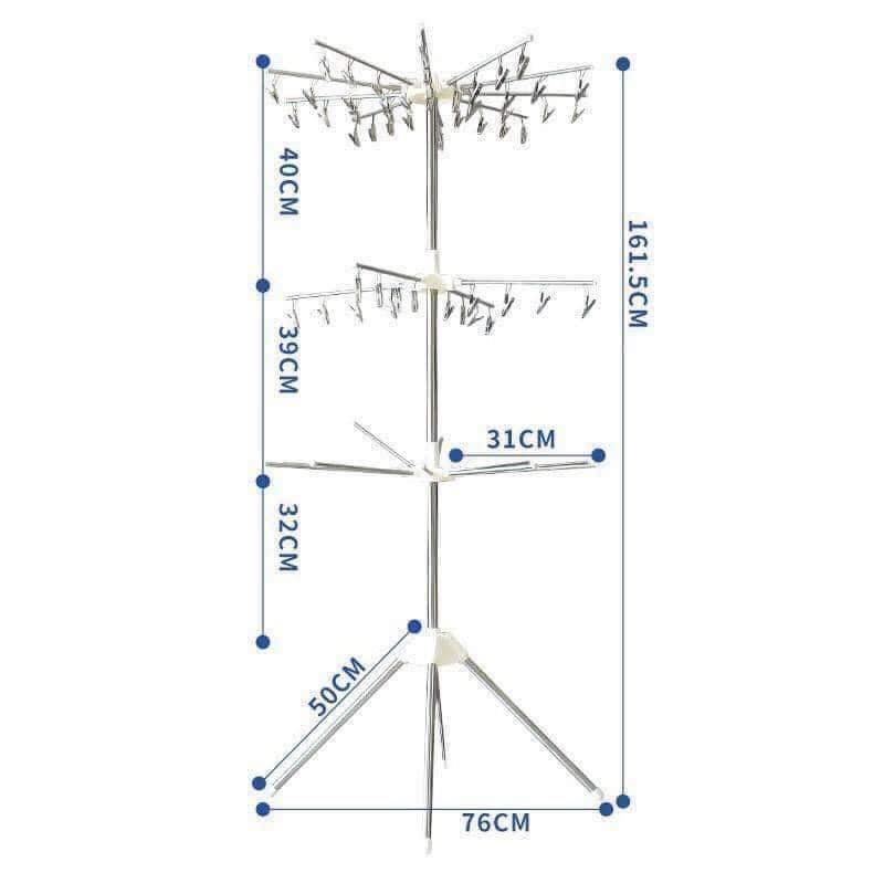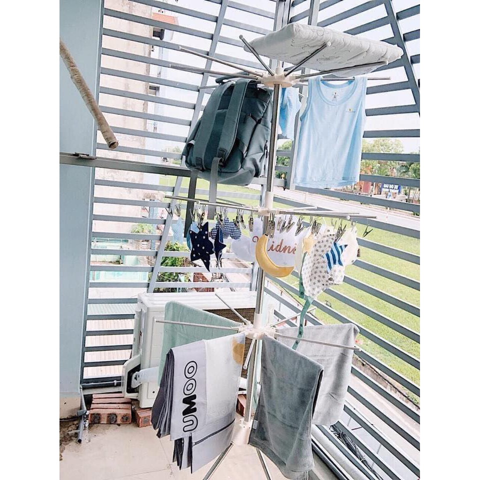 - 3 tầng cách biệt phơi được nhiều đồ, có 2 tầng 56 kẹp thuận tiện phơi bao tay, bao chân, khăn cho bé