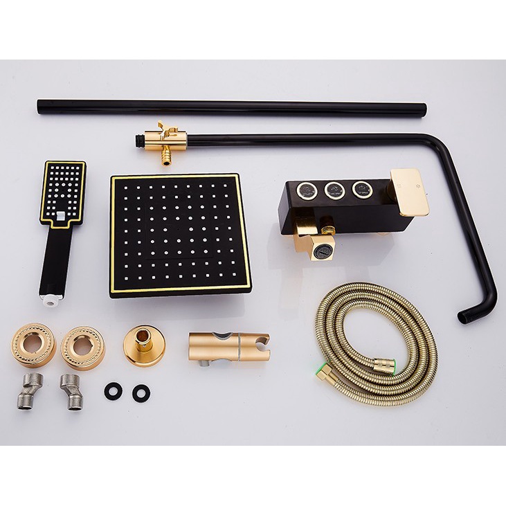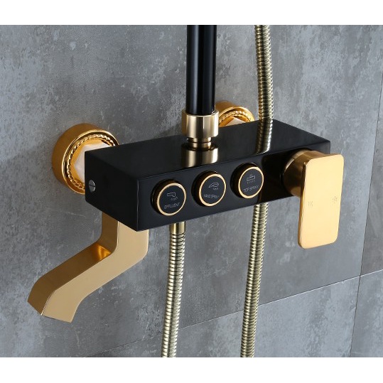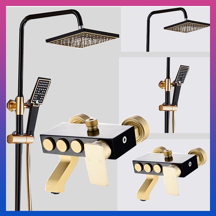 Bộ cây sen tắm đứng FAUCET 2 màu đen vàng, sơn đồng tĩnh điện cao cấp tặng 10 phụ kiện đi kèm