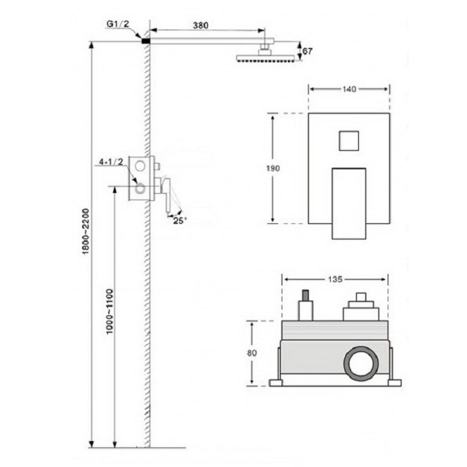 Bộ cây sen vòi tắm nóng lạnh Âm tường Sang chảnh cho biệt thự, khách sạn, resort, v.v. Hợp kim Siêu cấp ITALIA