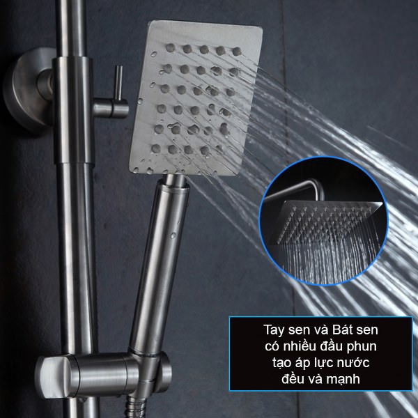 - Bộ cây sen vòi tắm nóng lạnh SUS304 (kiểu vuông) bền chắc không chứa chì, đảm bảo an toàn cho nguồn nước sẽ là sản phẩm lý tưởng để bạn nâng cấp cho phòng tắm của gia đình.